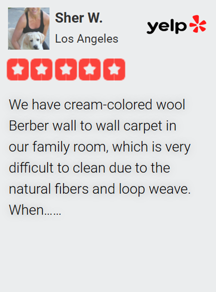 we used Stanley Steamer, the hot steam discolored the carpet in areas surrounding the stains and their suction extraction method damaged the carpet, leaving it with a hard, scratchy surface and track marks from the machine. I was hesitant to try another cleaner, but Jake at Best Carpet assured me they are very experienced with wool berber and they use a use carbonation technique, not hot steam to clean carpets. I can happily report that his team did an amazing job and our cleaner, Cen, was very careful and detailed in cleaning the stains while improving the texture and returning our carpet to it’s natural softness. I highly recommend Best Carpet for wool berber carpet cleaning and would definitely use this company again.